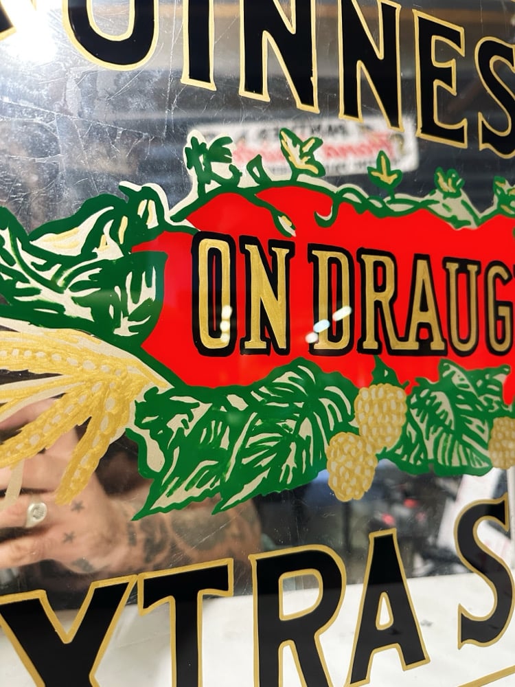 Hand painted and gilded Guinness mirror. 63cm x 48cm.